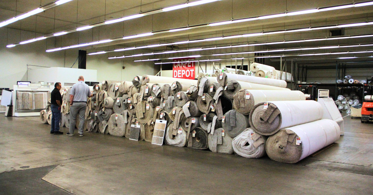 So just how big are we, anyway? With approximately 12,000 square feet of warehouse space, we literally have miles of carpets stacked to the ceiling. That’s a lot of carpet!